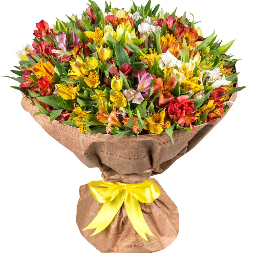 Альстромерия – 51 шт.Атласная лента – 1 шт.Крафт упаковка – 1 шт.