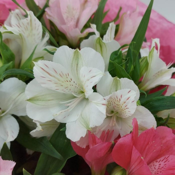 Яркие, стойкие альстромерии в стильном монобукете. Такой букет всегда уместен и подойдёт для любого повода: День Рождения, именины, годовщина свадьбы, рождение ребенка, 8 марта, День Святого Валентина, выпускной и т.д. Можно вручить маме, сестре, подруге, коллеге, учителю, любимой.