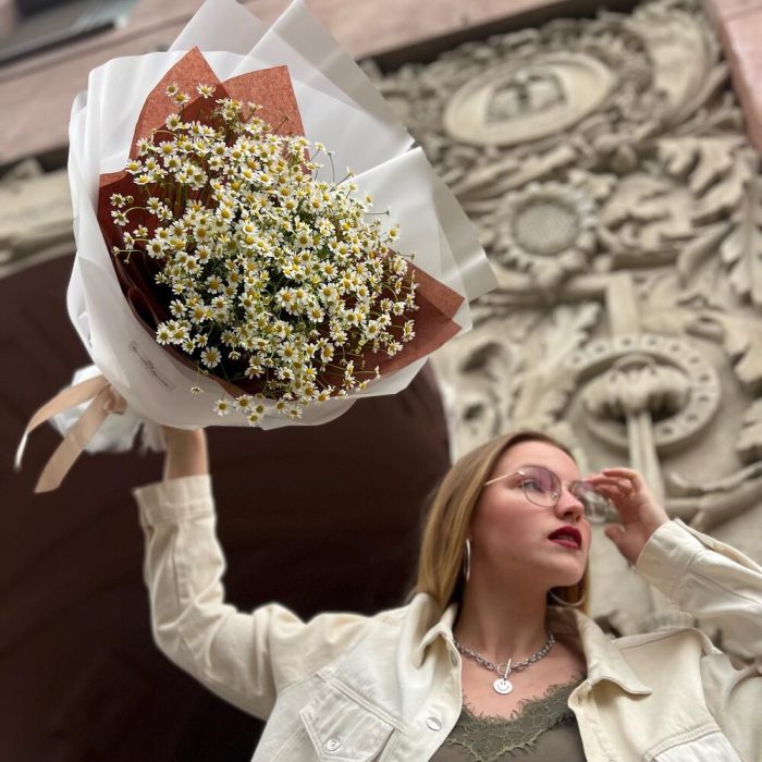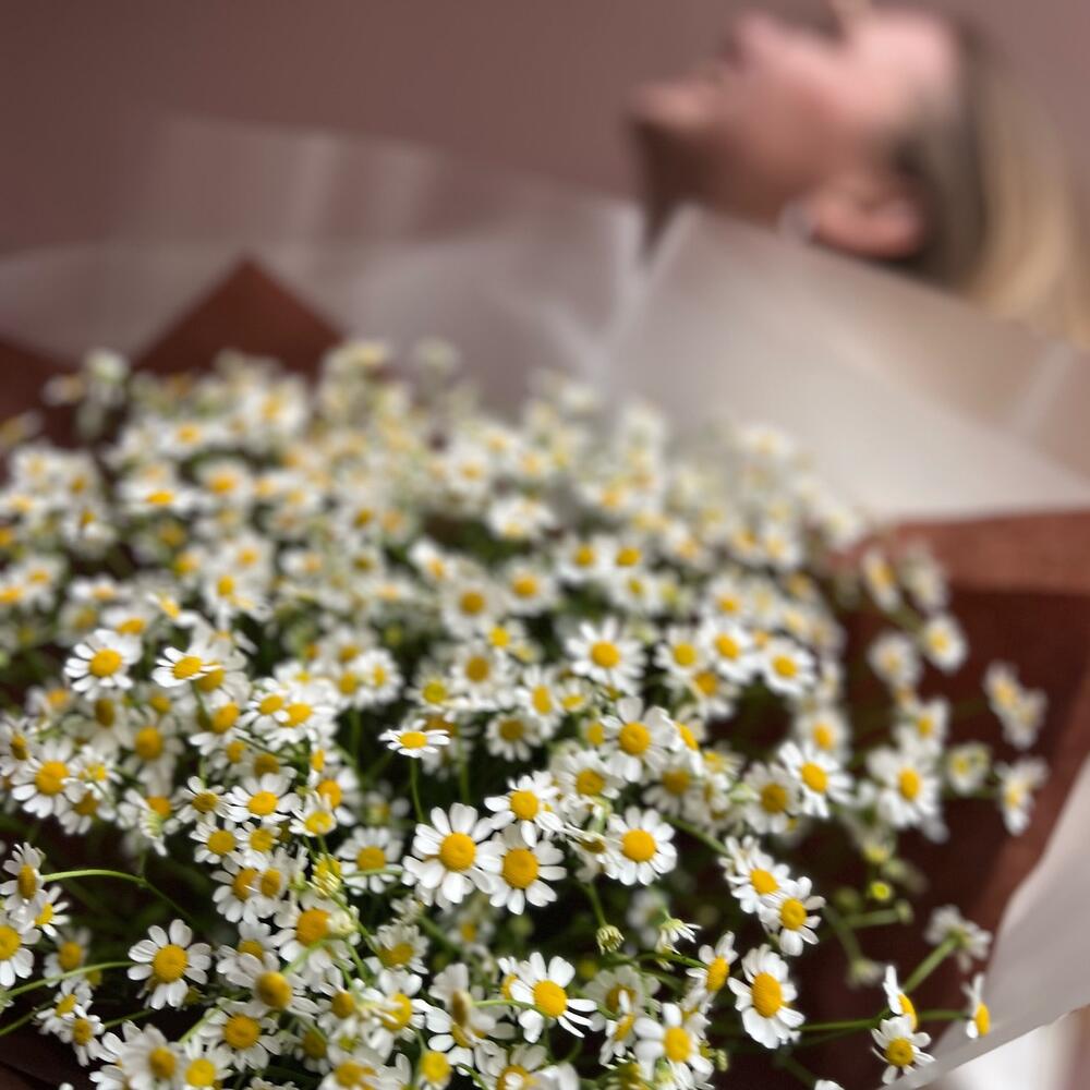 Лента атласная – 1 шт.Тишью – 2 шт.Матрикария – 15 шт.Пленка матовая – 2 шт.