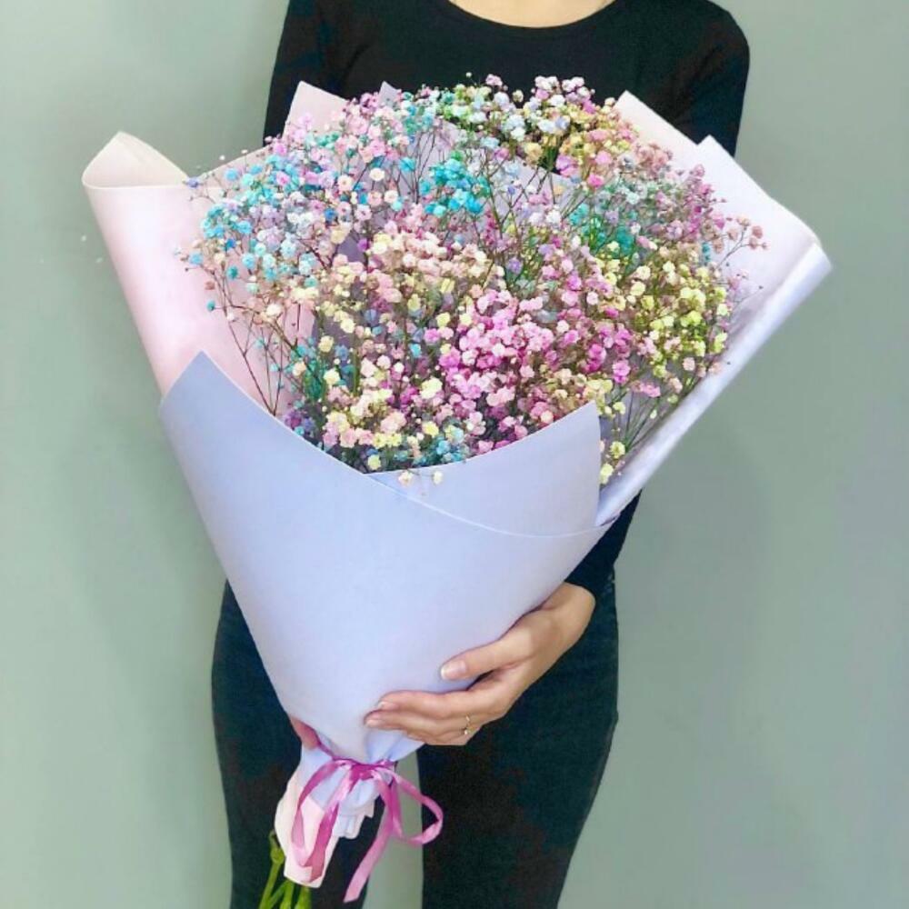 гипсофила радужная – 5 шт.Пленка – 1 шт.Лента – 1 шт.