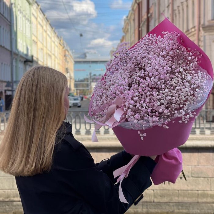 Гипсофила – 13 шт.Лента – 3 шт.Тишью – 3 шт.Упаковка дизайнерская – 1 шт.