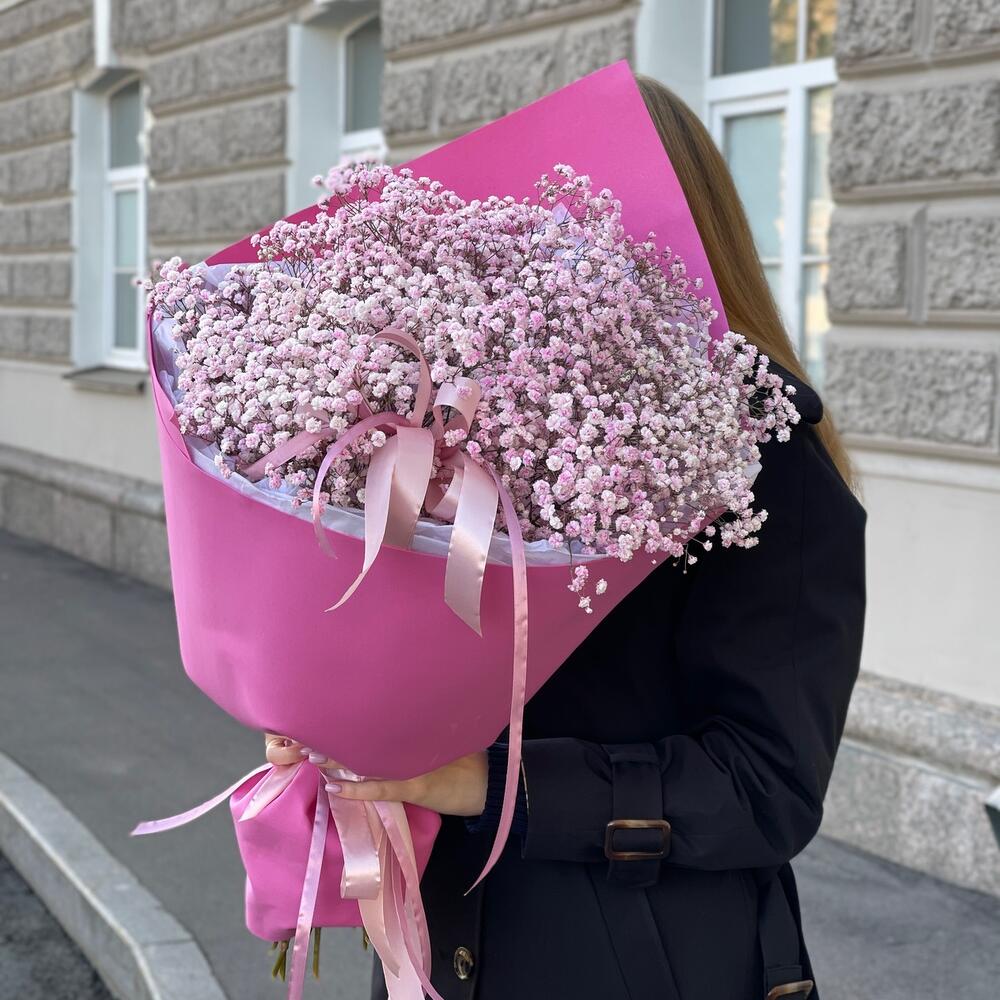Букет с розовой гипсофилой «Ты мой мир XXL»