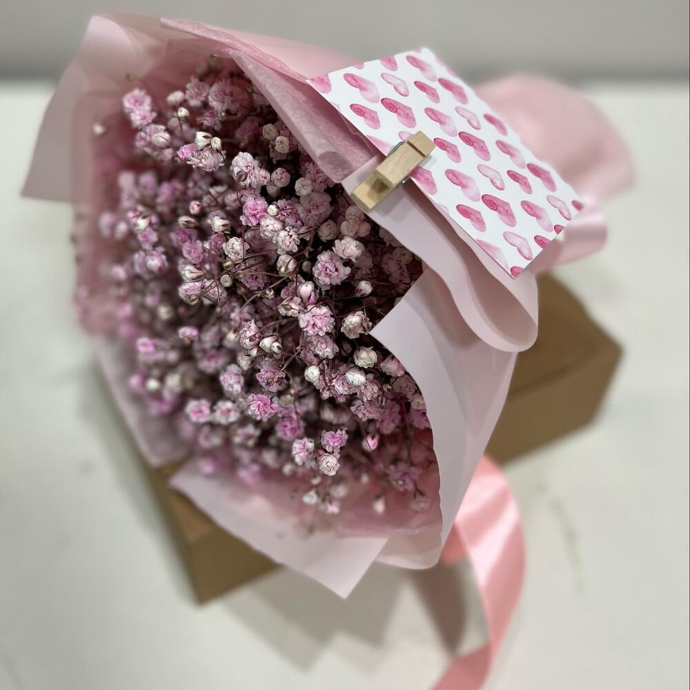 Букетик из розовой гипслфилы и Сладкое