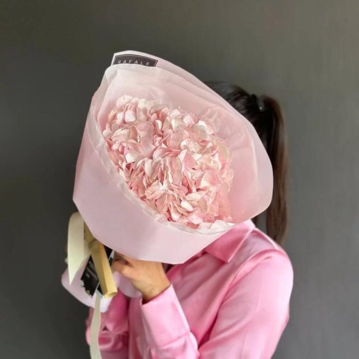 Букет "SOLO 8.0" состоит из 1 голландской гортензии в оформлении. Розовая гортензия говорит о романтике, нежности, сердечных переживаниях и любви. Соцветия розовой гортензии очень напоминают форму сердца. Выбрав букет от RAFALE, Вы скрасите день обладательницы букета и подарите ей незабываемые эмоции.