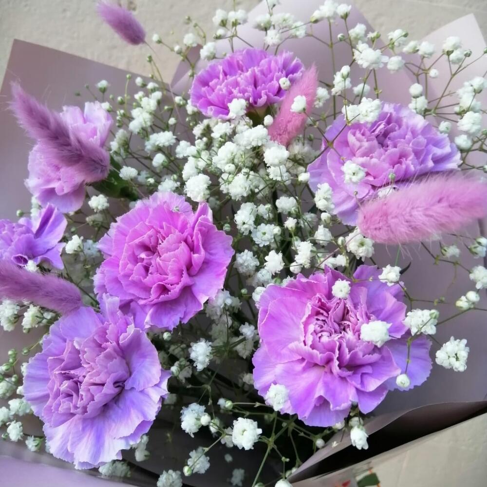 Букет Лунный из гвоздики с гипсофилой