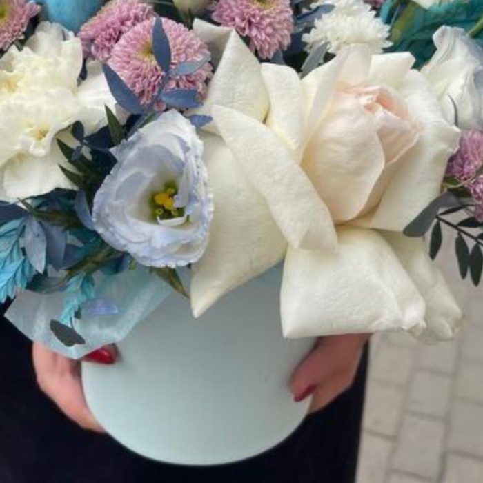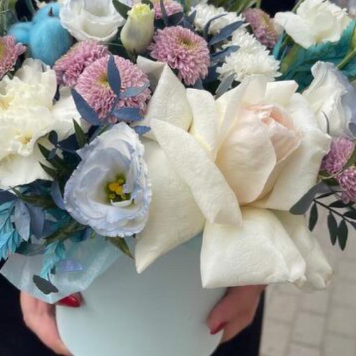 Коробочка с цветами в голубых оттенках