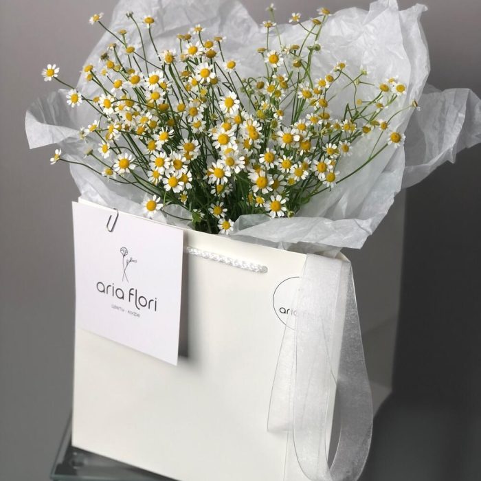 Мелкие Ромашки – всегда заряжают позитивным настроением, простота и легкость в этом цветке:3Стильная упаковка в сумку/пакет придало ей шарма и удобства в транспортировке