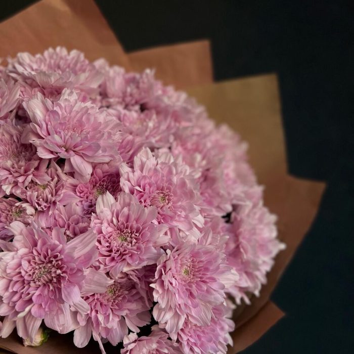 Кустовая хризантема – 11 шт.декоративная упаковка – 1 шт.Атласная лента – 1 шт.