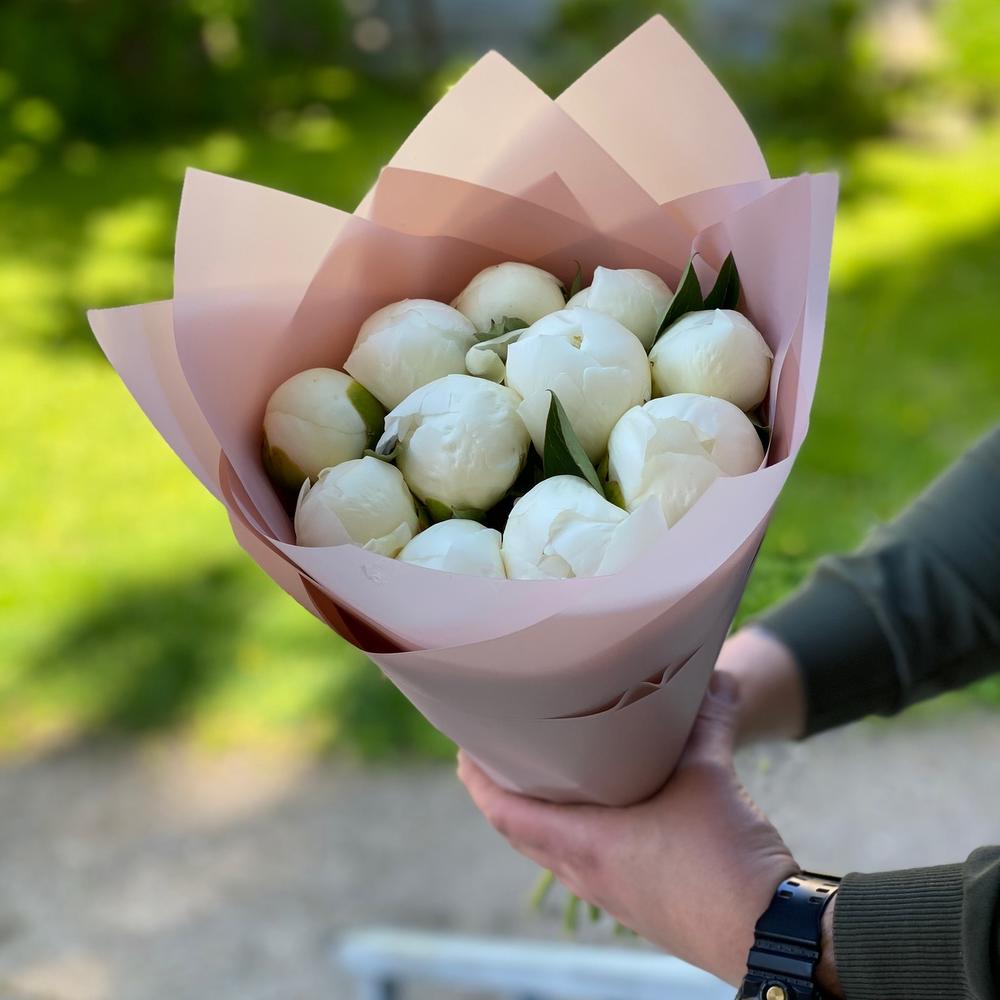 Пион – 11 шт.Лента атласная – 1 шт.Упаковка дизайнерская – 2 шт.