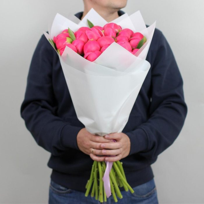 Лента атласная – 1 шт.Упаковка дизайнерская – 4 шт.Пион коралл шарм – 25 шт.