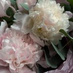 Атласная лента – 1 шт.декоративная упаковка – 1 шт.пионы – 5 шт.Эвкалипт – 3 шт.
