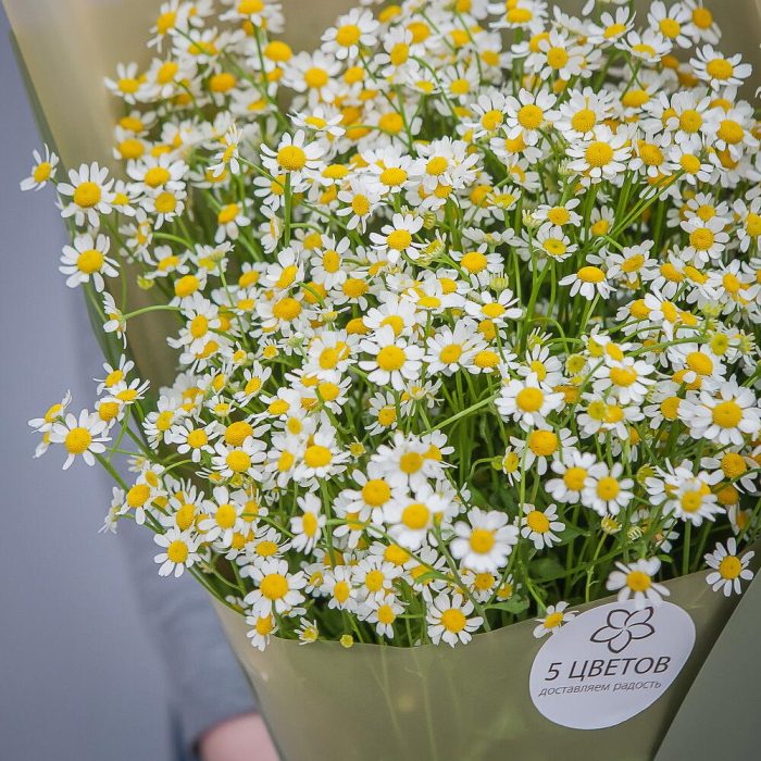 ромашки – 35 шт.дизайнерская упаковка и атласная лента – 1 шт.