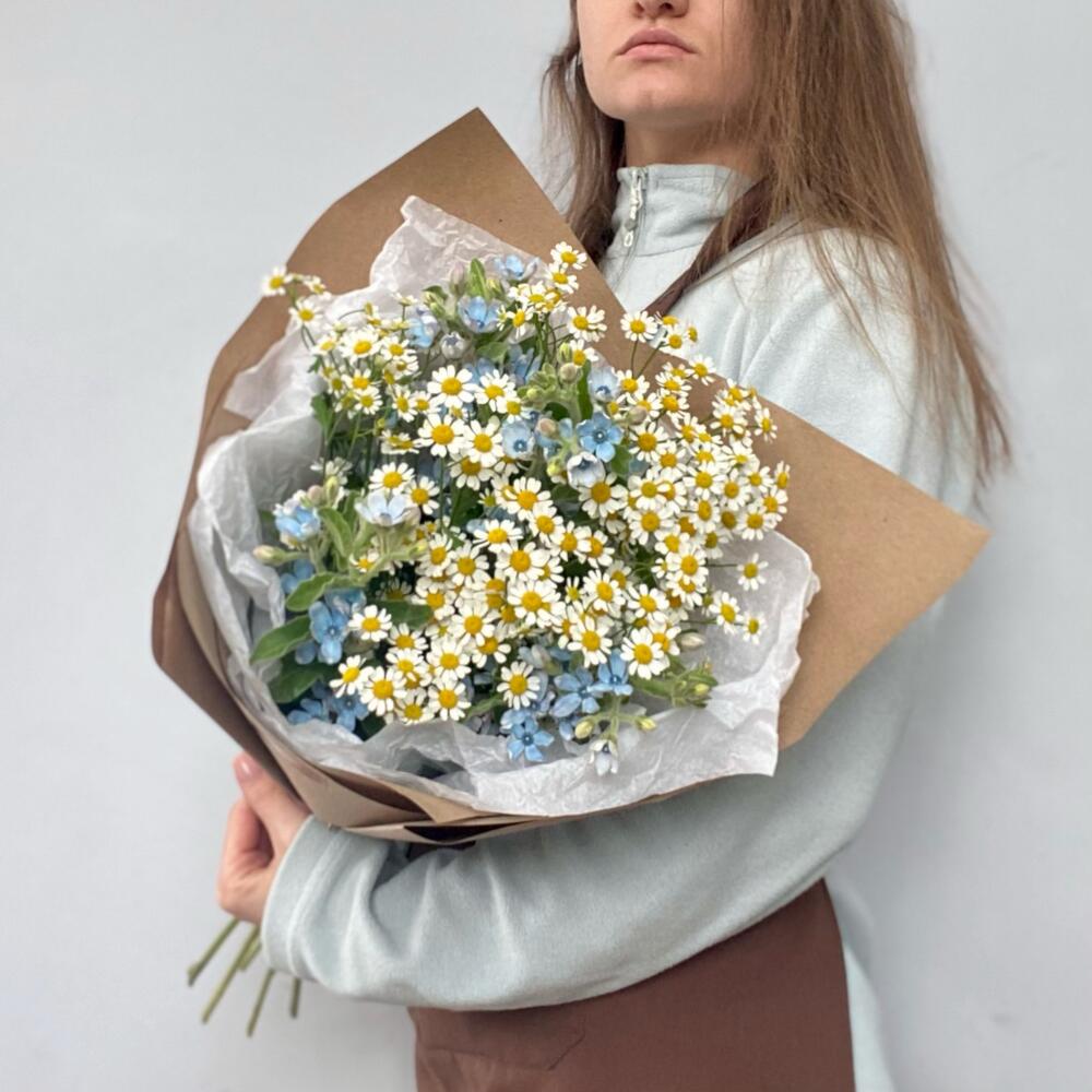 Букет из 15 садовых ромашек в стильной упаковке "Авирам"