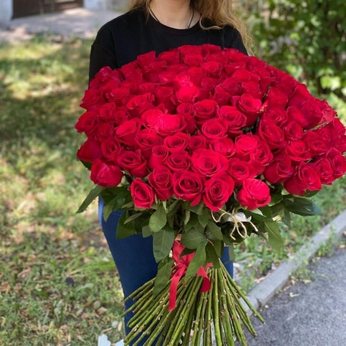 Роза эквадор 90 см – 101 шт. Упаковка мешковина – 1 шт.