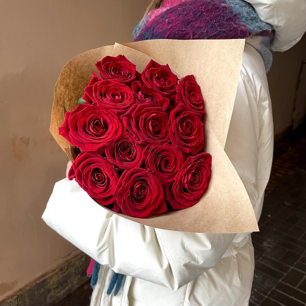 Крафт упаковка – 1 шт.роза россия красная – 13 шт.