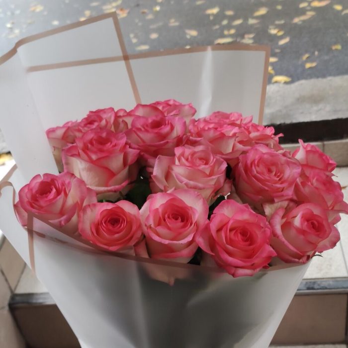 роза украинская сорт джумилия – 19 шт. Упаковка калька флористическая – 1 шт.
