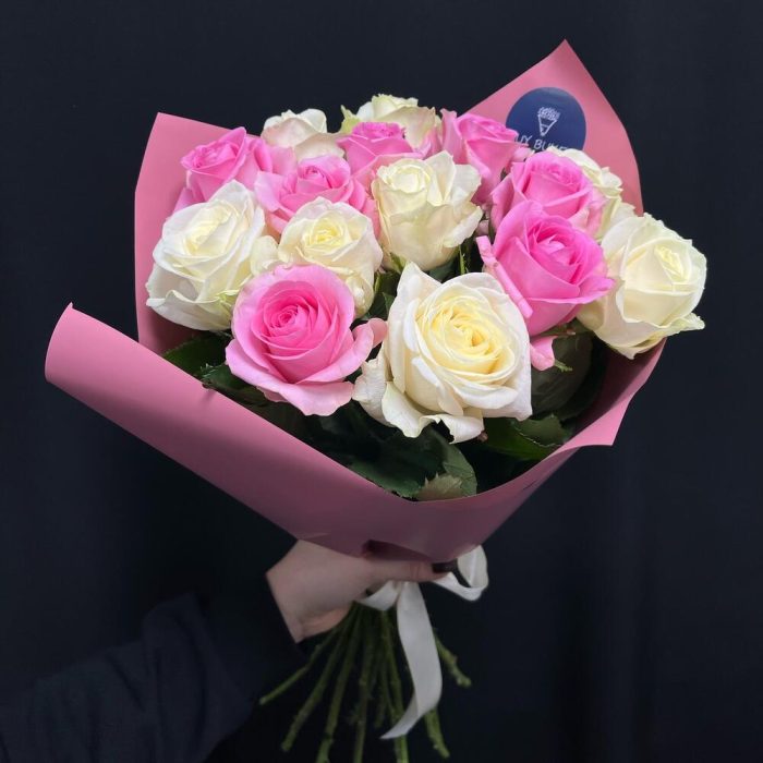 Букет из 15 белых и розовых роз