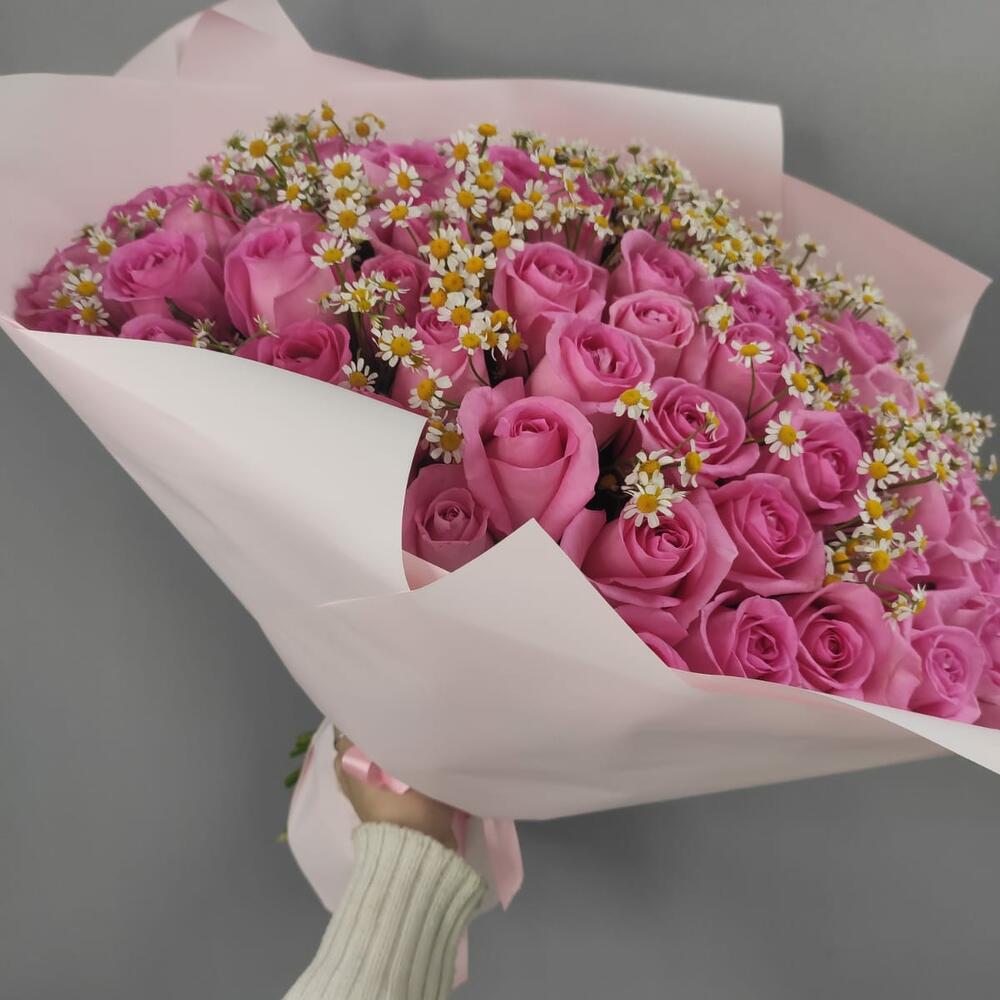 Роза розовая – 91 шт.Ромашка матрикария – 22 шт.