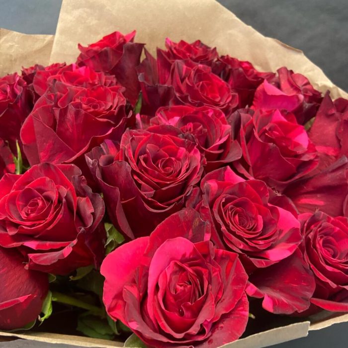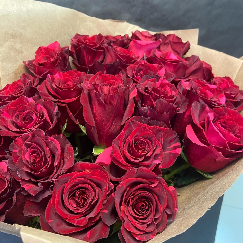 Букет из 25 роз микс 35-40 см (Кения) в упаковке