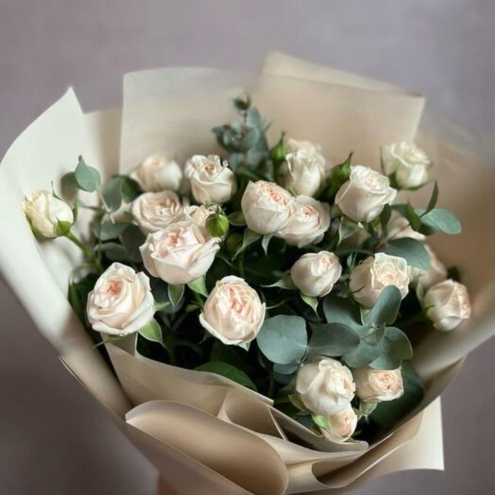 Букет из пионовидной кустовой розы и эвкалипта “Нежность”