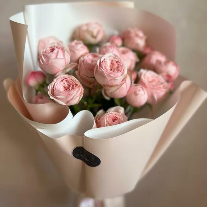 Пионовидная кустовая роза – 3 шт.декоративная упаковка – 1 шт.Атласная лента – 1 шт.