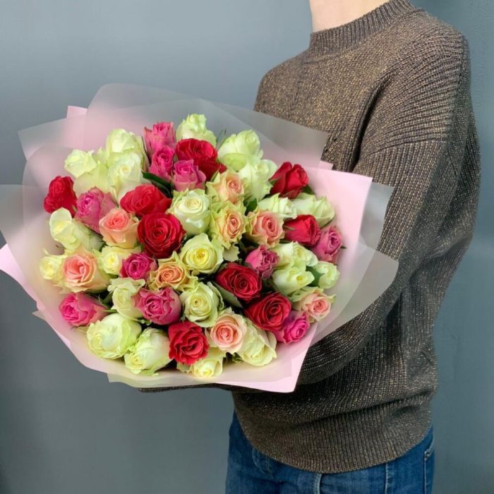 Букет из роз Кения микс 51шт