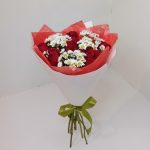Хризантема кустовая Сантини – 3 шт.Дизайнерская упаковка – 1 шт.роза кения – 6 шт.