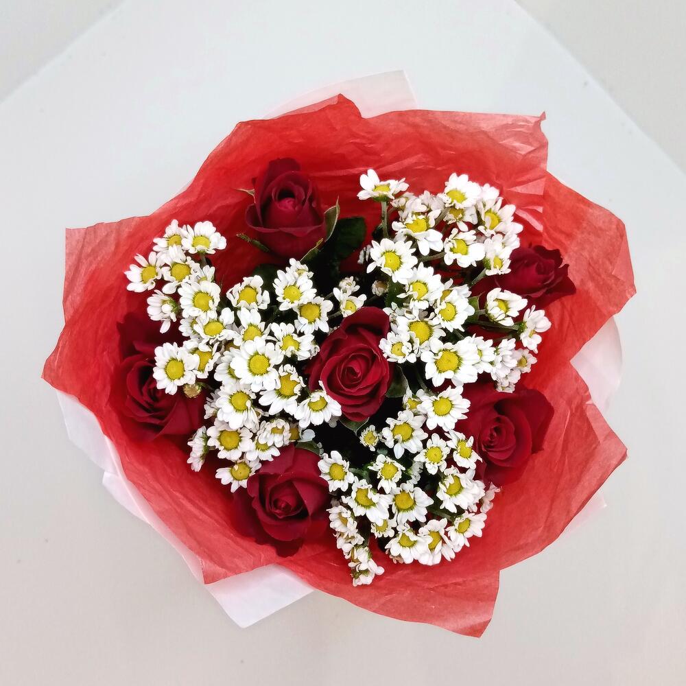 Букет из роз красных и Сантини