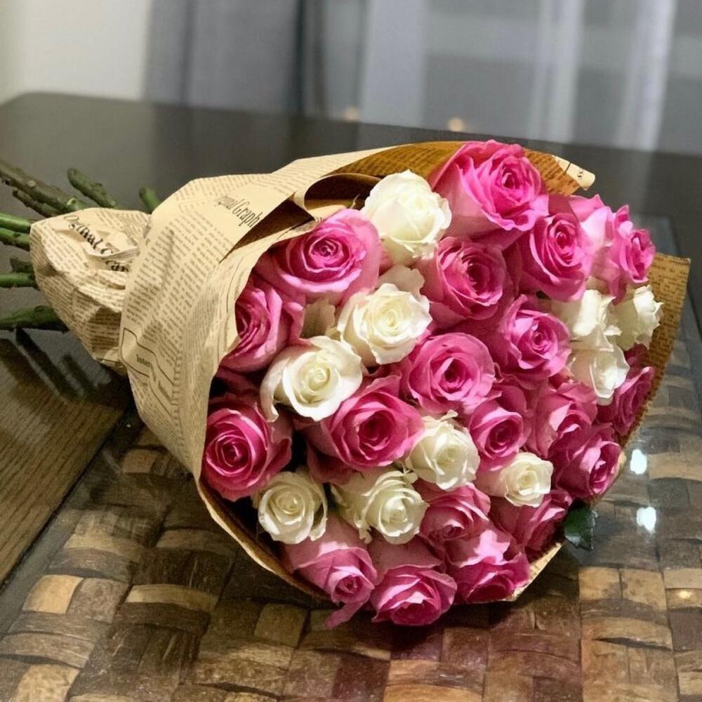 Букет из розовых и белых роз