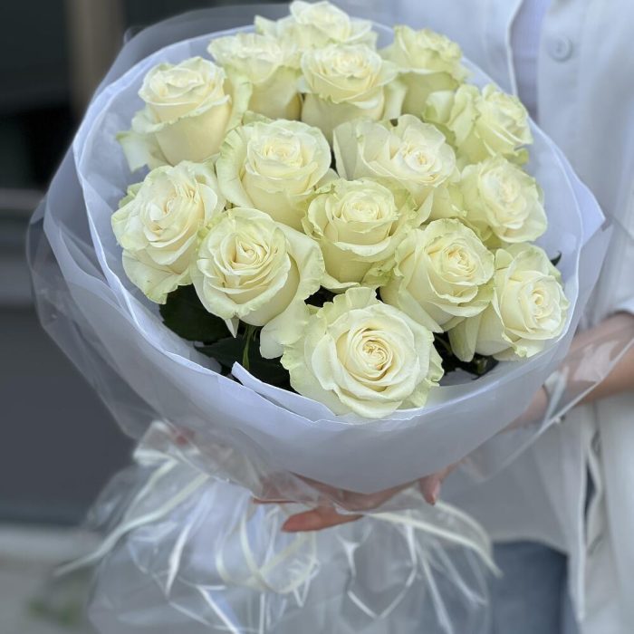 Метки: 15 роз, Белые розы, На свадьбу, от 2000 до 3000 руб, Роза 50 см