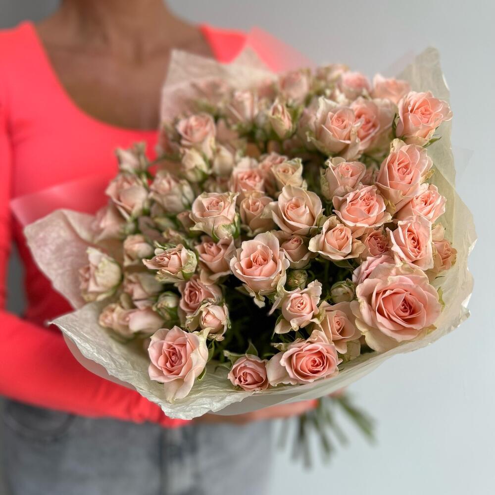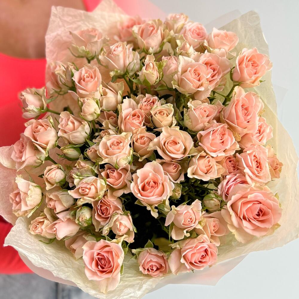 Кустовая роза – 15 шт.Тишью – 2 шт.Упаковка – 2 шт.