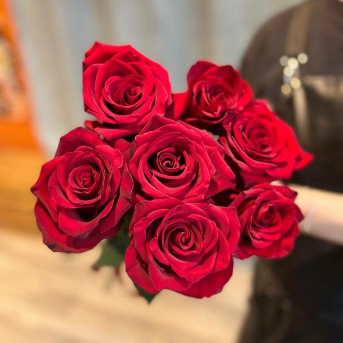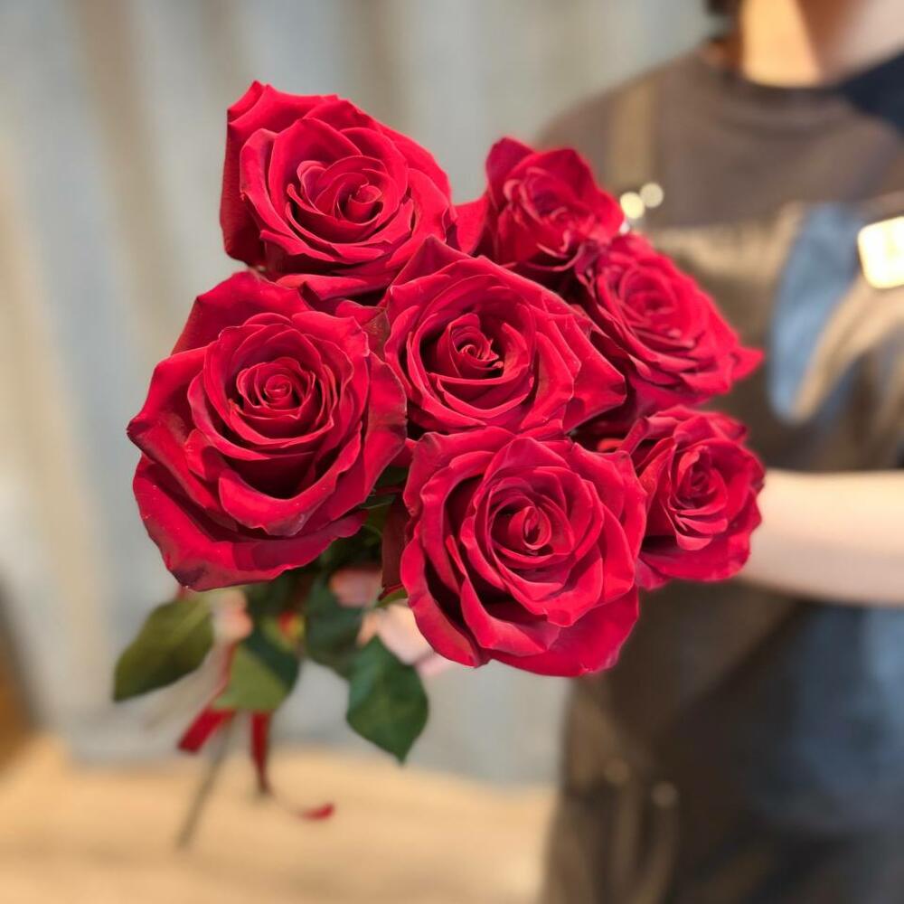 красные розы эквадор 50 см – 7 шт.