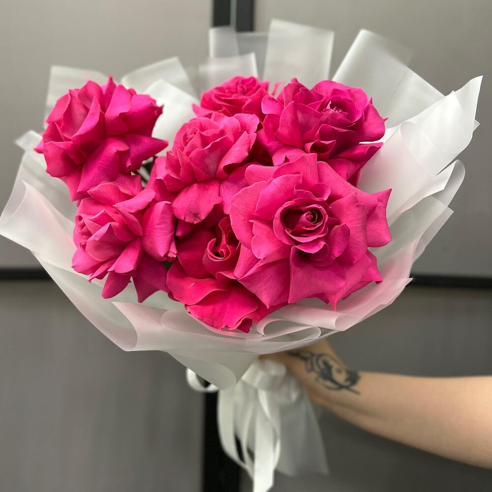 Французская роза – 7 шт.Пленка матовая – 9 шт.Лента атласная – 2 шт.