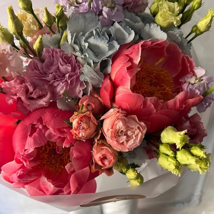 Категорий: Гвоздики, Гортензии, Кустовые розы, Лизиантусы, Пионы, Розы