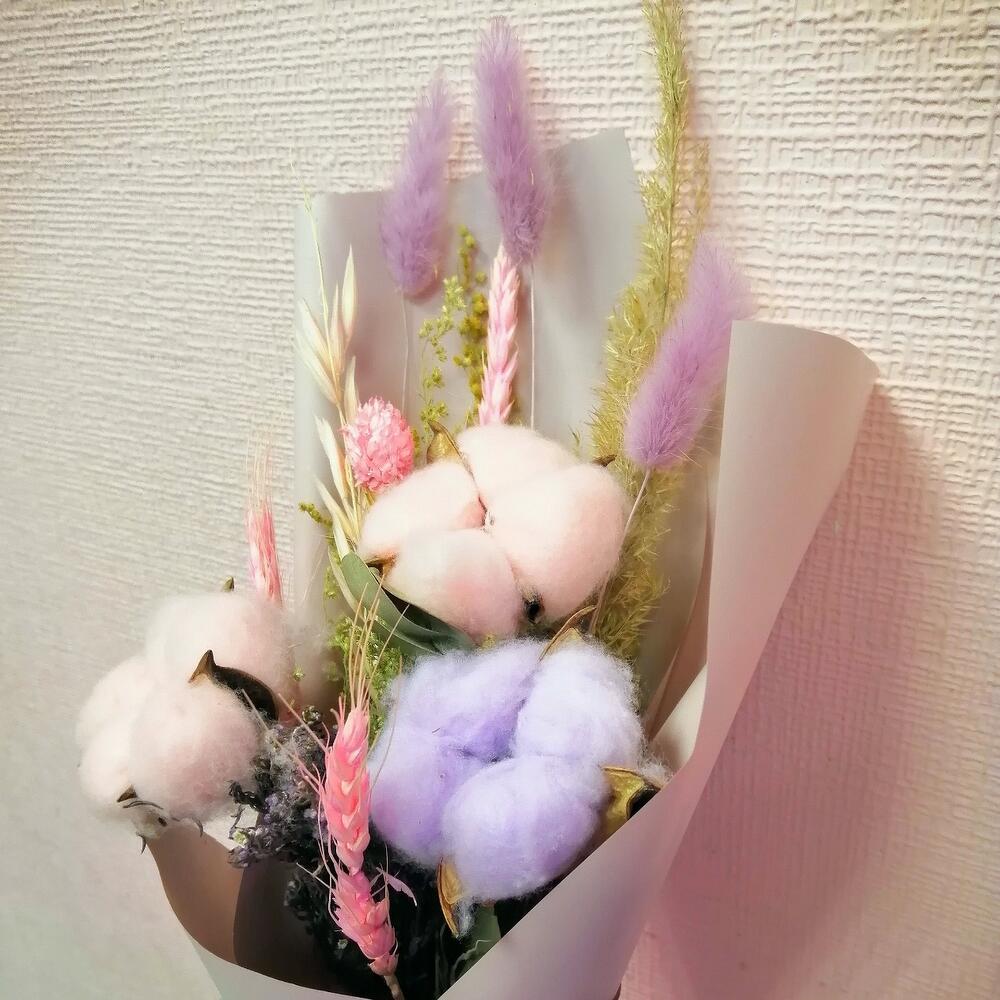 «Лавандовое созвездие» Букет из розы, гвоздики, статица и хлопка