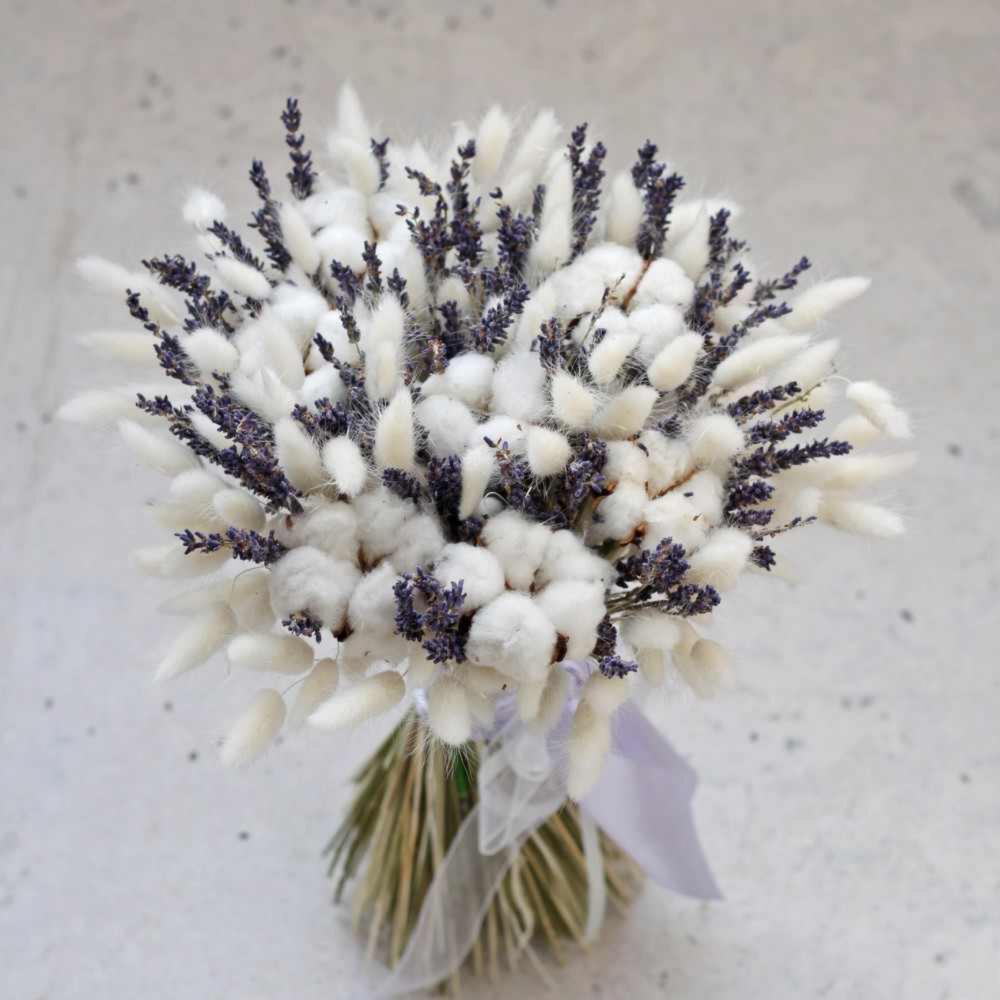 Букет с лаванда, лагурусом и хлопком
